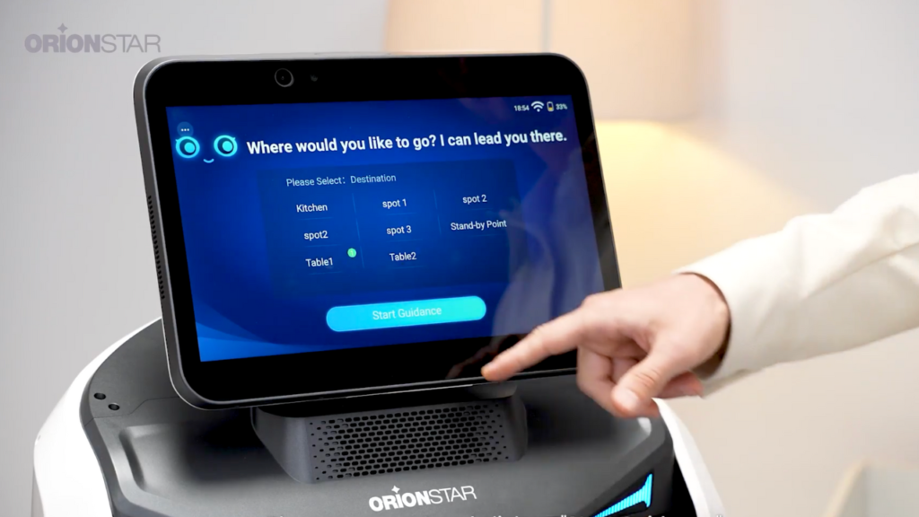 Robot czeka w strefie wejścia, wita gości i prowadzi ich do wolnego stolika wybranego przez obsługę. To idealne wsparcie dla recepcji, które robi niesamowite pierwsze wrażenie.