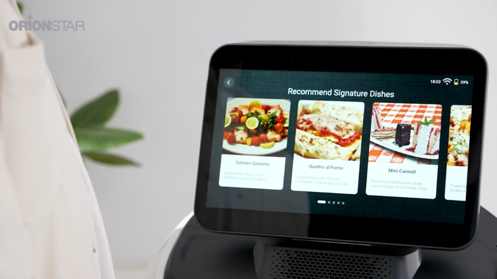 Wykorzystaj ekran 14", aby kusić deserami i drinkami. Robot skutecznie zwiększa średnią wartość rachunku.